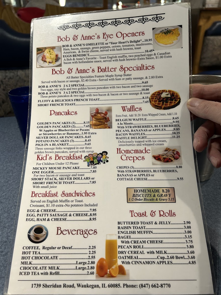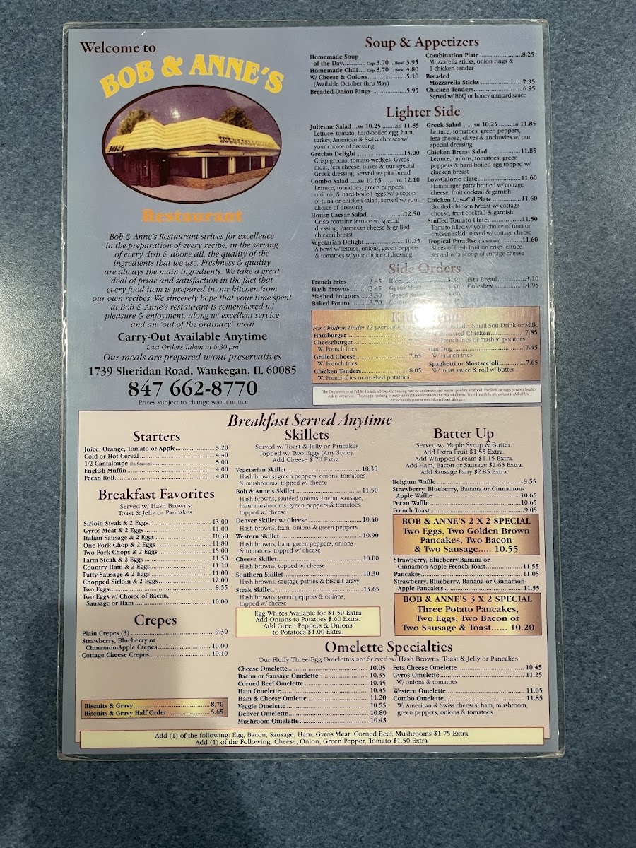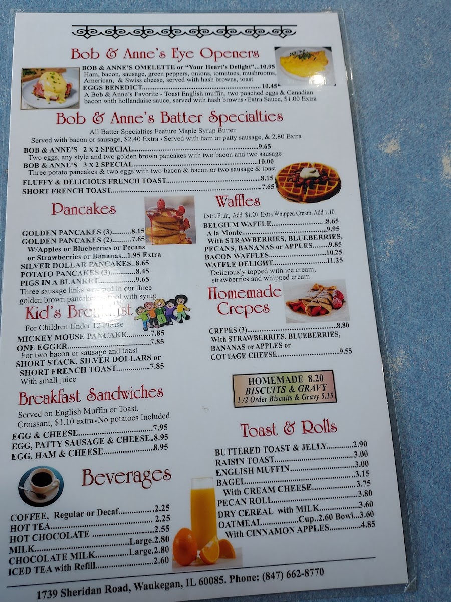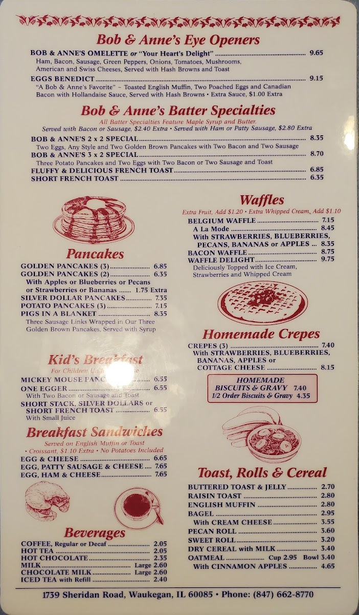 Bob & Anne's Restaurant Menu